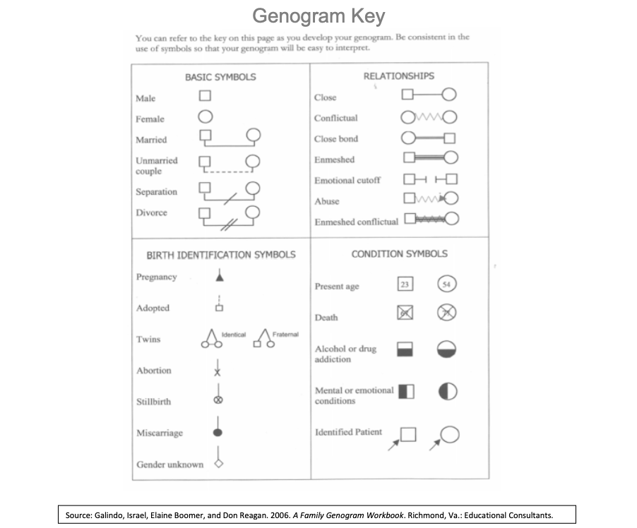 You will have the opportunity to be with or speak to family members this coming week or for Thanksgiving—this is a perfect opportunity to begin to map your family system and complete a genogram of your family’s relationships! Do this assignment together with your family of origin and your family of creation if you can; it will provide a fascinating perspective into your family without any persecution or blame, and it is a great way to promote understanding between one another.